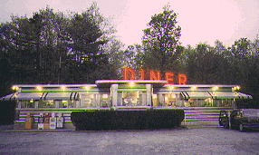 No matter where I travel, there's only one question constantly on my mind: Where's the closest diner! I don't mean "restaurant" or anything like that. I want a good diner. One that serves breakfast 24 hours a day. One that has a counter and stools and some booths, and a lot of stainless steel. One that preserves the classic styling of the Art Deco diners of my youth. But the most important thing is the menu. Good food, reasonably priced, served by waitresses with those little dupe books and a pencil on their ear. Waitresses that can hold all the food for a table of four on one arm and still whistle. Listed below are a few of my favorites, culled from various places around the country and from the New York area. I haven't been everywhere, so I know I've missed a lot of good diners, and there are probably thousands of very good ones, but these are some that I've selected as superior. If you're in any of these places, check them out. My main criteria for selection was classic styling, since the food is always good and pretty uniform from one to the other. A few stand out for superior food as well as classic styling. 1. Sunny Day Diner, Lincoln, New Hampshire