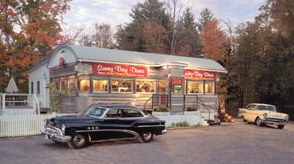 No matter where I travel, there's only one question constantly on my mind: Where's the closest diner! I don't mean "restaurant" or anything like that. I want a good diner. One that serves breakfast 24 hours a day. One that has a counter and stools and some booths, and a lot of stainless steel. One that preserves the classic styling of the Art Deco diners of my youth. But the most important thing is the menu. Good food, reasonably priced, served by waitresses with those little dupe books and a pencil on their ear. Waitresses that can hold all the food for a table of four on one arm and still whistle. Listed below are a few of my favorites, culled from various places around the country and from the New York area. I haven't been everywhere, so I know I've missed a lot of good diners, and there are probably thousands of very good ones, but these are some that I've selected as superior. If you're in any of these places, check them out. My main criteria for selection was classic styling, since the food is always good and pretty uniform from one to the other. A few stand out for superior food as well as classic styling. 1. Sunny Day Diner, Lincoln, New Hampshire